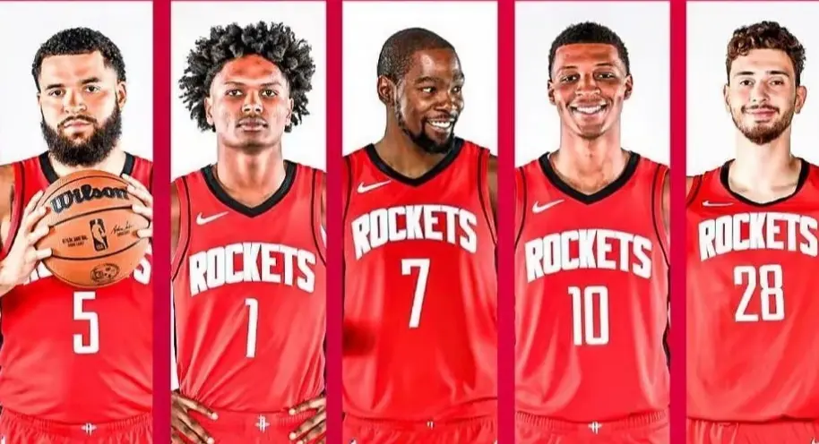 火箭队被列为休赛期“最大赢家”,预计首发阵容为:范弗利特、阿门·汤普森、杜兰特、小贾巴里·史密斯和申京。媒体指出,上赛季当狄龙顶替杜兰特出战时,这套阵容在130回合中净胜对手高达30.9分。随着杜兰特的加入,火箭进攻端稳定性将进一步提升,申京在欧锦赛的进步也令人期待。若阿门和小贾巴里能提升外线稳定性,火箭将成为新赛季总冠军的有力竞争者。
