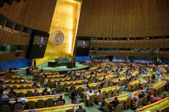 这是6月26日在位于纽约的联合国总部拍摄的联合国大会纪念联合国宪章签署80周年的非正式全体会议现场赢盈配资。新华社发(联合国供图/洛伊·费利佩摄)